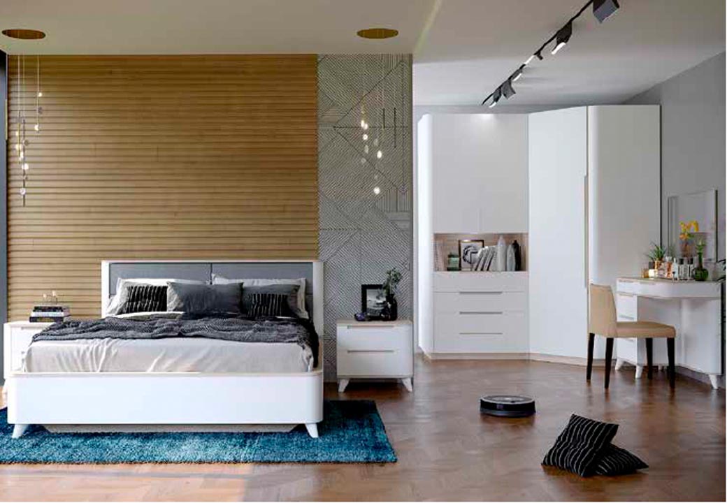 Вместо одиночных предметов используйте цельный гарнитур, который сам по себе создаст четкое зонирование. Комплекс, объединяющий кровать, прикроватные тумбы и шкаф, визуально структурирует пространство, отделяя зону сна от остальной части комнаты. Это решение придает интерьеру завершенность и лаконичность.