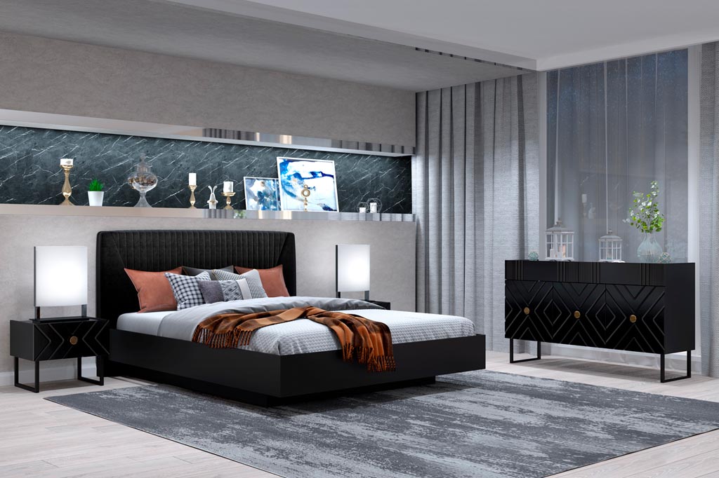 - Начните с кровати. Она — главный акцент. Выберите модель, которая задаст тон всему интерьеру.
